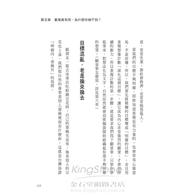 讀完此本書,讓我覺得提醒自己重複某些事,就會讓自己的人生更美好。使我有動力並相信只要我有重複地去執行,成功將離我不遠。