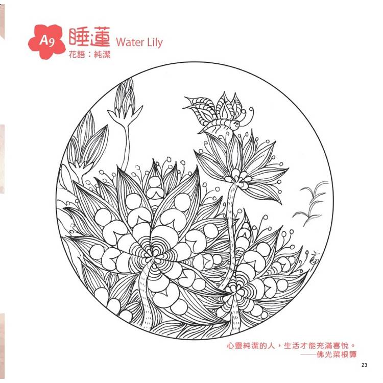 談及創作緣起,覺年法師常提到自己深受星雲大師《佛光菜根譚》的啟發,以「心保與環保」為創作初衷。為了深化教育意涵,覺年法師特別設計 Q 版花草彩繪圖像,在版面中保留充足的空白,邀請讀者自由塗鴉、書寫與創作。可以臨摹實物的色彩,也可以依個人喜好揮灑想像,更可以在花瓣與枝葉之間,記錄當下的心情與體悟。這樣的設計,不僅協助認識百花,更讓學習者在著色與描繪的過程中,培養專注與美感,在一筆一畫之間,感受心靈的安定與療癒。