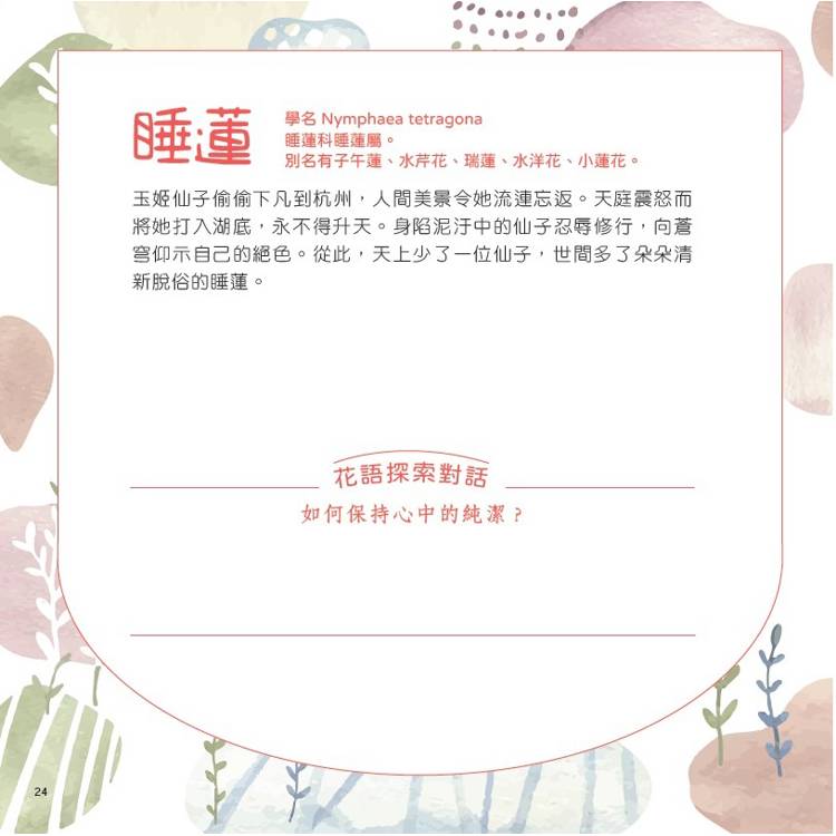 《百花齊放繪圖ABC》不僅是一部花草圖鑑,更是一扇通往生命教育的窗口。讓大人與孩子在翻閱之間,學會親近自然、敬重萬物,懂得取法自然的智慧,在花影搖曳中學習感恩,在清香盈懷裡體會知足常樂的幸福。