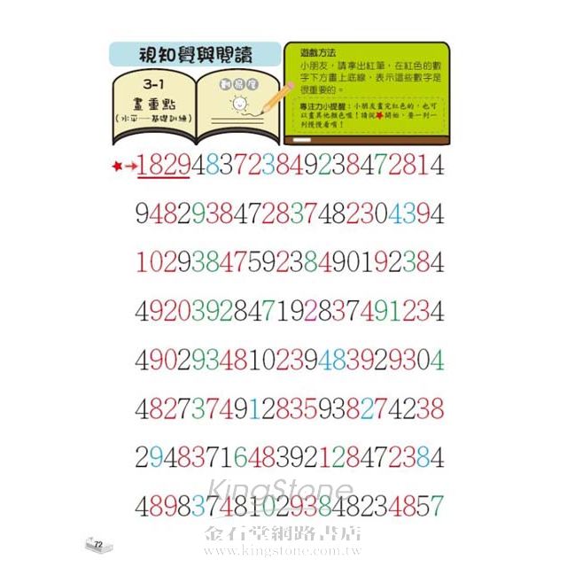 讓孩子可以將注意力放在水平或是垂直的閱讀規則上,並熟悉水平及垂直的閱讀方式。