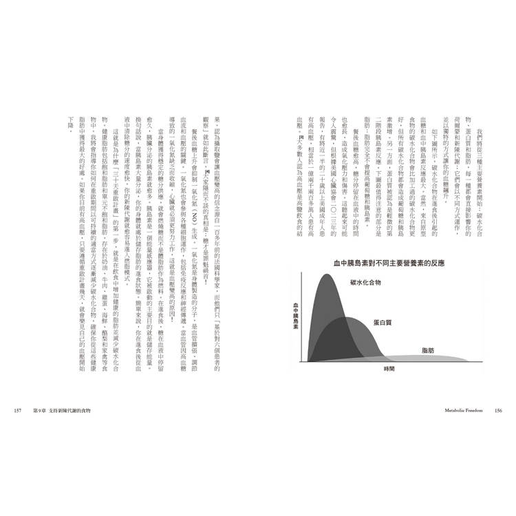 身體不是熱力學定律那樣的線性系統,而是一個有眾多變數的開放系統。它是一台受需求而非供應所驅動的機器,而荷爾蒙和發炎程度決定了需求。荷爾蒙每次都會打敗熱量。舉例來說,當碳水化合物活化了感測身體能量的胰島素和mTOR(mechanistic target of rapamycin),身體就會啟動合成代謝狀態,生成肌肉並儲存脂肪。如果我們吃更多脂肪,減少攝取碳水化合物,新陳代謝會降低胰島素和mTOR,活化交感神經張力(健康壓力反應)和自噬作用(細胞回收),發出分解體脂肪和肌肉的訊號,此時身體就進入了修復模式。這就是在荷爾蒙控制下啟動身體進行燃脂,而非受到熱量的控制。