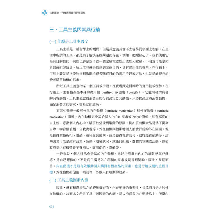 回想過去30 幾年讀書、教書、推廣和接觸有機農業和農民的歷程,雖然我覺得有機農業已經被更多的人接受,出版的書已經很多,但是教書過程中,一直找不到適當的有機農產品行銷參考書,而一般商業行銷的書又覺得與有機格格不入。近年來接觸一些佛法,才發覺要行銷或推廣有機農業,就跟法師要推廣佛法一樣的辛苦,需要很深廣的知識和身體力行,才能破除消費者的質疑。繞了一大圈,才發覺原來有機農產品行銷,要結合佛法,跨越農業經濟學、行銷學觀點,把農業推廣和社會學論點一起放進來⋯⋯