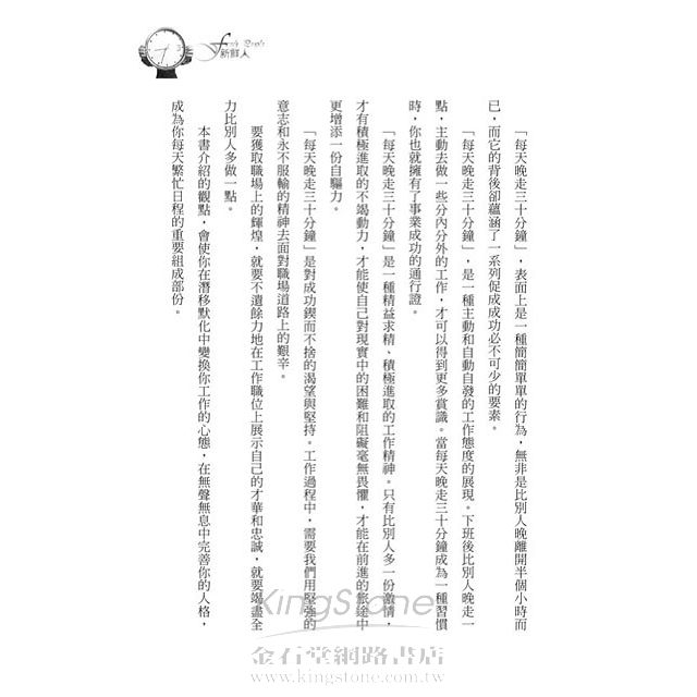 ?? 其實每天晚走一會、多做一點,初衷也許並非為了獲得更多的報酬,而結果往往獲得的更多。我們要想超過別人,就一定要有「每天晚走三十分鐘」的習慣!