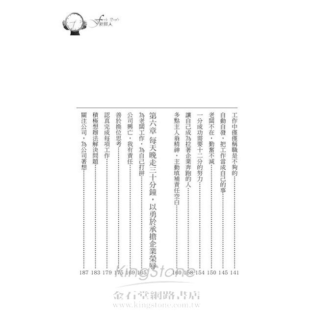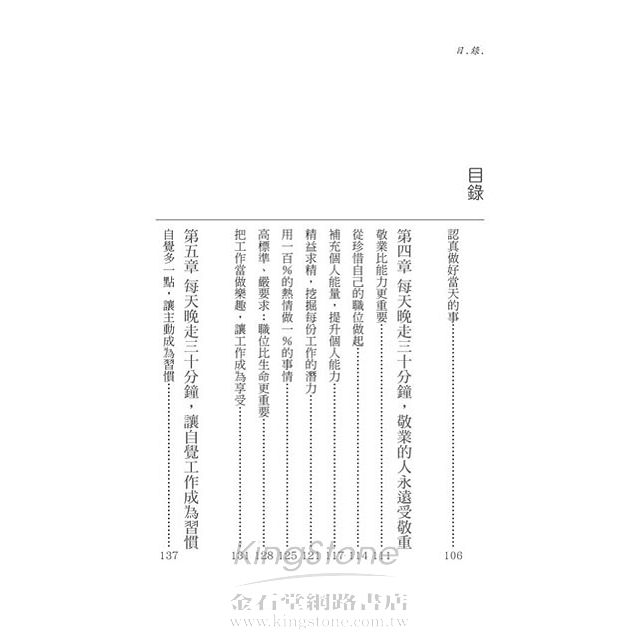 本書介紹的觀點,會使你在潛移默化中變換你工作的心態,在無聲無息中完善你的人格,成為你每天繁忙日程的重要組成部份。