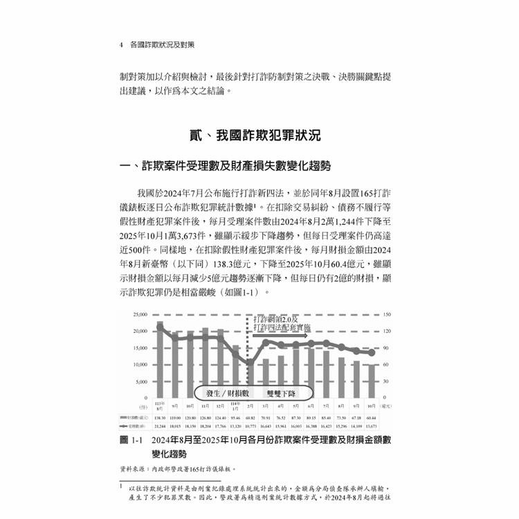 第二篇聚焦於「我國詐欺犯罪治理及其法制」,從網絡治理、電信詐欺機房治理、行政管理措施、警察與其他機關之分工合作,到司法行政處分與救濟機制,並延伸至165圈存金額返還、洗錢防制告誡處分,以及「詐欺犯罪危害防制條例」之功能與加重處罰規範,進行多面向且深入的制度檢視,充分呈現我國打詐政策在政策面、法制面、管理面與執行面所面臨的關鍵課題與改革方向。