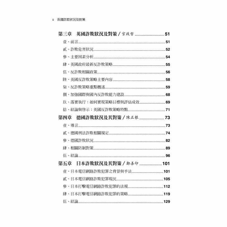 《各國詐欺狀況及對策》一書,正是在此背景下集結學術界與實務界研究成果,從國際比較與整體治理的視角切入詐欺犯罪議題。全書共分三大篇,第一篇以「各國詐欺狀況及其對策」為主軸,分別探討我國、美國、英國、德國、日本、澳洲、新加坡之詐欺犯罪現況,系統分析各國防詐政策與治理策略之制度設計及其實際成效,為我國反詐提供重要的比較基礎與借鏡經驗。