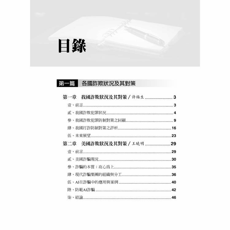 本書從國際視角切入詐欺犯罪議題,回應詐團朝向有組織化、企業化、科技化與跨境化的趨勢。全書共分三大篇,涵蓋各國詐欺狀況與對策、我國詐欺治理與法制檢視,以及實務偵查與防治策略。內容結合政策法制分析、科技防詐、跨機構聯防、執法困境與案例研析,呈現從打詐政策法制到執行的完整架構。期望協助研究者、決策者與執法機關掌握反詐最新趨勢,強化我國打詐能量。