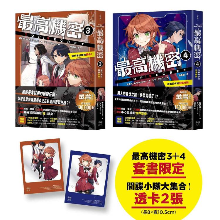 最高機密3+4(套書)【贈「間諜任務出動中!」透卡2張】:部門考試難得要命!、決戰前夕的出場時間(銷售突破13萬冊!金賞獲獎話題作。謎團真相即將揭曉?!間諜學園物語續集)
