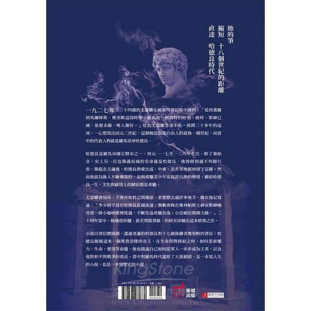 哈德良一生的豐功偉績實在不少,而他與希臘美少年安提諾烏斯的戀情更為人津津樂道。在《哈德良回憶錄》中,作者瑪格麗特.尤瑟娜,以如詩的筆調寫就這本歷史小說,全書以哈德良的第一人稱行文,娓娓道來一個尊貴崇隆的帝王,在生命即將終結之時,如何思索權力、生命、愛情等命題,他也描述自己如何從軍人一步步成為王者,以及他對和平與戰爭的看法。(文/編輯部整理)
