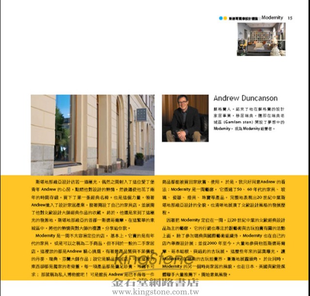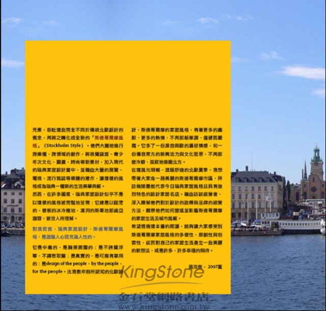 這本書更精選精采的兩百餘張斯德哥爾摩設計品設計店家照片,一窺設計師創意靈感來源,給你最溫暖舒適、最具個性的家居搭配建議
