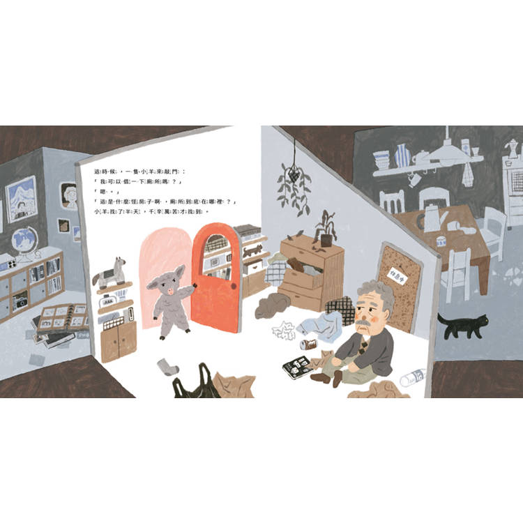 直到有一天,一隻小羊敲門拜訪,為寂靜的房子帶來生氣。