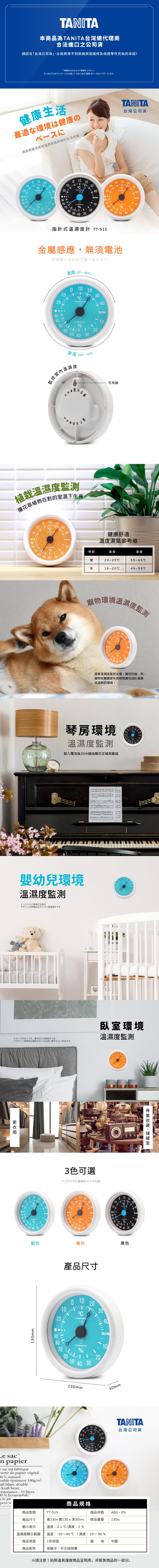 日本TANITA指針式溫濕度計TT-515-藍-台灣公司貨