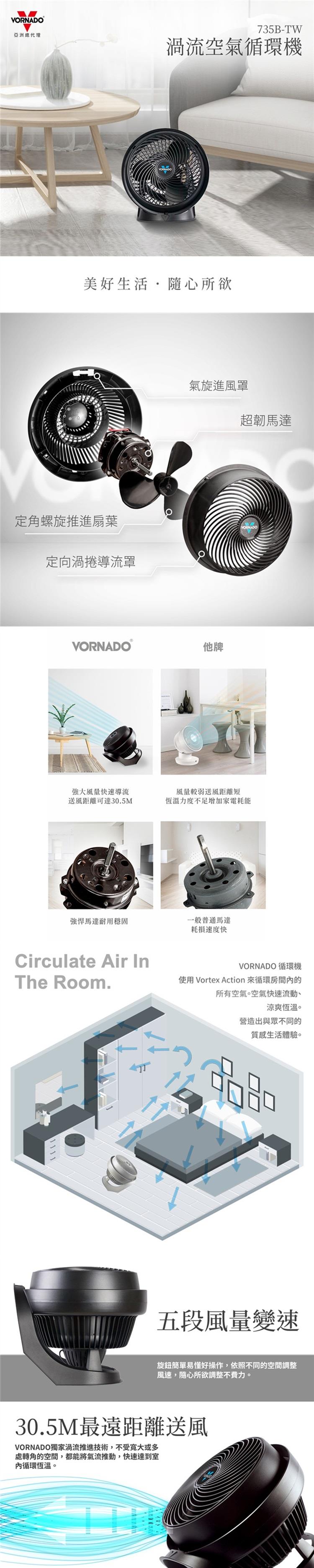 美國VORNADO沃拿多 8-12坪用 渦流空氣循環扇 735B-TW 美國原裝進口