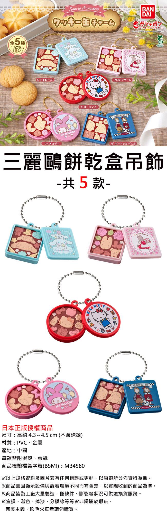 全套5款 三麗鷗 餅乾盒吊飾 扭蛋 轉蛋 迷你餅乾盒 大耳狗 兔媽媽 凱蒂貓 美樂蒂 BANDAI