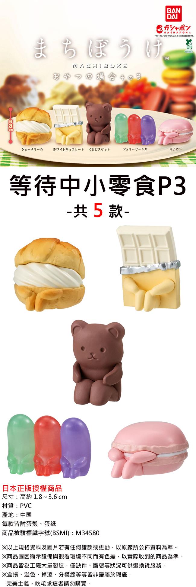全套5款 等待中小零食 P3 扭蛋 轉蛋 奶油泡芙 白巧克力 小熊餅乾 雷根糖 馬卡龍 BANDAI