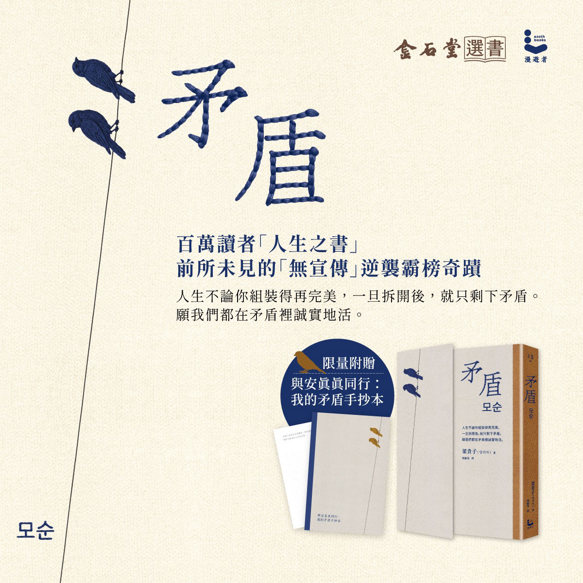 01/28 《矛盾》於1998年出版,當年出版便已是暢銷之作,之後以「長尾銷售」的形式穩定存在於書市。而真正讓人驚訝的是,從2020年開始,在出版社幾乎沒有任何宣傳操作的情況下,《矛盾》開始於各大排行榜「逆襲」,而且一年比一年更強。   到了 2023 年,在韓國最大的書店教保文庫,《矛盾》也長期穩居前十名。即使在韓國作家韓江獲得諾貝爾文學獎後,《矛盾》短暫被擠出榜單,但之後仍迅速回歸前段位置。這樣的生命力,在競爭激烈、每月大量新書上市的韓國文學市場中,幾乎是異數。   那麼,《矛盾》究竟憑什麼呢?   《矛盾》的核心魅力,首先來自女主角安真真。她聰明、獨立、幽默,卻並不完美。她不是被理想化的女性典範,是一個極度寫實的角色。女性讀者在她的思考方式與猶豫中看見自己的影子,而男性讀者也能從她身上,認出身邊那些正在為生活奮鬥的女性友人。   《矛盾》沒有刻意的將安真真美化,或給予過度的優勢,所以讓她顯得更貼近現實。25歲的安真真,身材不高不矮且相貌平凡,站在婚姻與人生選擇的門檻上,她直白地說「婚姻是她的事業」,因此她認真思考、比較、選擇兩個同時追求她的男人。愛與被愛、自由與穩定,安真真要怎麼選,其實她也不知道。   而一個個「矛盾」衝福是否有能前往未來幸福的可能?   這樣的設定,在 1990 年代的韓國社會背景下,或許帶有時代痕跡,但放到今日閱讀,卻絲毫不顯陳舊。「為關係做出選擇」仍然是多數女性在不同年齡階段都會面對的問題。而安真真正用她的人生告訴我們。   《矛盾》這個書名,在故事中並非僅止於表面。小說裡,安真真的母親與阿姨,構成了兩種截然不同的人生樣本;追求她的兩個男人,則分別映照她的父親與姨丈。這些角色之間形成層層對照,將安真真推入一個無法逃避的選擇結構。   表面上,這些是顯而易見的對比,但實際上,卻是更普遍的人生狀態,也就是「選擇」。   我們每天都在選擇,只是大多數選擇被日常稀釋,顯得微不足道。而當選擇牽涉到人生價值時,便成為無法迴避的矛盾。而《矛盾》則是帶你誠實呈現選擇,並接受需要承擔的人生重量。   我們的安真真是否幸福了?究竟矛盾之下,哪裡才能讓她圓滿?   安真真最後做出了選擇,而有韓國讀者寫下:「我只能希望,真真此刻在一個更好的地方,能漂亮地、勇敢地與不幸搏鬥,不再孤單,依然閃閃發光。」當一個虛構角色能引發這樣的情感投射,代表她早已超越小說本身,成為讀者生命經驗的一部分。   因為我們相信,無論結果如何,安真真都會為自己的選擇負責。即使幸福最終變成不幸,她也會像她看似坎坷卻始終閃耀的母親一樣,繼續生活、繼續戰鬥,並且繼續在矛盾中找到生活的光點。如同我們的人生。   在選擇越來越多卻讓人越來越焦慮的時代,《矛盾》溫柔的提醒我們:所有矛盾,都是認真活著的證明。