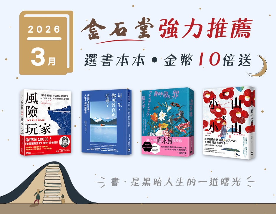 2025/11/17-12/16,購買指定商品任一件且無退貨,可得金幣50點(依購買數量累贈),訂單累計無上限! (※金幣預計於2025/12月下旬發送,發送日起次月月底到期,請依「會員中心-金幣查詢」資料為準。金石堂網路書店有權決定取消、終止、修改或暫停本活動。)