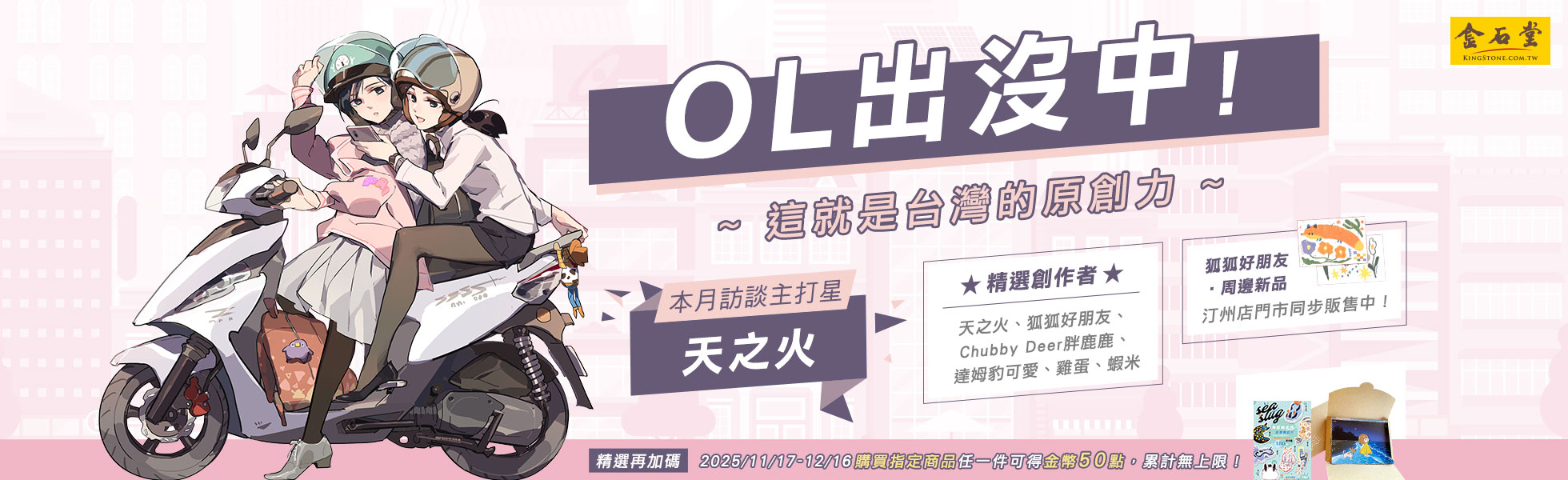 2025/11/17-12/16,購買指定商品任一件且無退貨,可得金幣50點(依購買數量累贈),訂單累計無上限! (※金幣預計於2025/12月下旬發送,發送日起次月月底到期,請依「會員中心-金幣查詢」資料為準。金石堂網路書店有權決定取消、終止、修改或暫停本活動。)