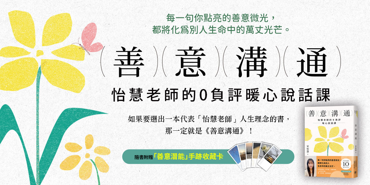 每一句你點亮的善意微光, 都將化為別人生命中的萬丈光芒。 如果要選出一本代表「怡慧老師」人生理念的書, 那一定就是《善意溝通》! 宋怡慧創作10 週年紀念作 【隨書附贈】 「善意潛能」手跡收藏卡 ✦✧✦ ●透過「聆聽階梯」: 釐清糾結情緒,透過對話拋接建構清晰思路! ●掌握「飛輪效應」: 溝通深度大幅加深,複利累積帶來人際紅利! ●熟記「肯定方程式」:發掘他人的優勢,化身拉人一把的讚美貴人! ●善用「戲劇理論」: 靈活轉換心態,輕鬆化解職場中的人際摩擦! ●辨識「危險信號」: 以善意但堅定的態度,終止有害的人際關係! 許多人認識身為教育家、職場人、閱讀推手的「怡慧老師」,但鮮為人知的是, 她本質上是個安靜內向的「I型人」。比起上台說話,她更傾向於安靜聆聽;相較積極表現,她更樂意默默付出,促使她願意突破自我,與成千上萬人建立緊密連結的,正是她畢生踐行的秘訣——善意溝通。 善意溝通的力量無處不在:透過「專注傾聽」將負面情緒轉化為正向對話;藉由「精準提問」能促進積極互動;適時的「真誠讚美」可以打破溝通僵局。善意不需要任何成本,卻能為人際關係破冰,為身處困境的人帶來實質溫暖。善意溝通並不是遙不可及的表達技巧,而是每個人都能在日常生活中實踐的溝通藝術。 這本書,凝聚宋怡慧多年來善意實踐的精華與心法。她在挑戰中,發現機遇;她在機會面前,堅持不懈。善意溝通,為她的生命帶來了蛻變與奇蹟。她深信溝通並非直線,而是繞著「善意」的遠路才能抵達的終點。當我們以善意的語言敞開他人的心扉,你的身邊,將圍繞善意的友伴,我們的世界,也將變得更溫暖可愛。 ✦✧✦ ▌用善意的語言打開彼此的心扉; ▌用心交流,讓每一次對話都充滿意義! ✧理性的溝通是自我成長的機會;善意的互動,亦是靈魂相遇的美麗。只要提高心理素質,就能找到溝通的真諦,建立冷靜的溝通方式,領悟善意人生的奧秘。 ✧當你發現受困於關係的荊棘處,且飽受創傷的折磨,內心常受他人時冷時暖的對待而起伏跌宕,不妨學會放下,只要竭盡全力修補破碎的心牆,就是情誼圓滿了。 ✧找出矛盾的癥結,善用情緒管理、柔軟心、善意、微笑來讓人際破冰,就有機會四兩撥千斤地化解歧見與紛爭,若能把話說好,收穫最大的絕對是我們自己。 ✧正向語言帶有無遠弗屆的激勵力量,也具有互利共贏的特點。當你用心觀察對方的優點,並誠意地給予認同,就能傳遞真摯的心意,進而強化對方自信,促進彼此良好的互動關係。 ✧一句真摯的讚美,能夠化解人我之間的隔閡,拉近彼此的距離;一句及時的肯定,更能成為鼓舞人心的強心針,激發人們不斷前行的動力。 ✧請教就像一把知識的鑰匙,透過向人請益能夠打開知識之門;請教也像是一道燦光,在暗夜為我們指引正確的方向。當我們有疑惑,只要願意,向他人學習就能即刻獲得真正的答案。 ✧聊天不是比誰的說話術高明,誰就能贏得真摯的情誼。有時候,說話考驗著我們的情商,你不只要看準時機說話,也要淡定地閉口不談。 ✧優質的提問者善於掌握「什麼樣的關係,問什麼樣的問題」,問對問題,不只可以讓對方安心舒服地回答,也能消弭因為不熟悉而產生的敏感侷促。 ✧肯定式語言最重要的是覺察語言的舒適感,跳脫「言者無心,聽者有意」的表達泥淖,讓說話的思路對焦,找到溝通的理性本質。 ✧最好的溝通不是你說得有多巧妙,而是讓對方處於放心說話的場域,不自覺卸下心房,願意對你坦白,甚至願意對你「傾吐心聲」。理解他人的情緒,建立談話的信任感與安全感,就能讓對方敞開心扉說話。 ✦✧✦ ▌隨書附贈「善意潛能」手跡收藏卡 由怡慧老師親筆書寫善意金句,並搭配專業級絕美攝影,讓「善意」365天迴盪在書頁中,伴隨你度過珍貴閱讀時光。雙面彩色印製,6款一組。 ▌各界名家一致盛讚推薦! 【高中教師】厭世國文老師 【作家‧精神科醫師】廖泊喬 【全國super教師】趙蕙英 ─專文推薦─ 【作家‧企業講師】火星爺爺 【「閱讀前哨站」站長】瓦基 【企業顧問與人才培育講師】方植永(小安講師) 【王意中心理治療所 所長‧臨床心理師】王意中 【歷史作家】李文成 【臨床心理師‧作家】李郁琳 【譯者‧閱讀推廣人】李貞慧 【薩提爾親子溝通暢銷作家】李儀婷 【閱讀推廣人‧作家】林怡辰 【太毅國際顧問執行長‧書粉聯盟讀書會社群創辦人】林揚程 【暢銷作家‧歷史教師】吳宜蓉 【NU PASTA總經理‧職場作家】吳家德 【圖解力學院院長】邱奕霖 【臨床心理師】洪仲清 【作家‧作詞人】城旭遠 【諮商心理師】胡展誥 【袁上雯皮膚科診所醫師‧作家】袁上雯 【郝聲音Podcast主持人】郝旭烈 【小學教師‧「奮進號」船長】陳甘樺 【新加坡學者作家】陳志銳副教授 【奇幻小說、旅遊散文作家】陳郁如 【曾任臺中市立北新國中學務主任、輔導主任‧夢N-SONG讀講師】陳茂松 【宇喬創意廣告設計有限公司總經理】郭品辰 【詩人‧藝術家】許悔之 【商戰CXO執行長】許景泰Jerry 【馬來西亞波德申中華中學校長】張永慶 【亞羅士打吉華獨立中學校長】莊琇鳳 【暢銷作家‧《請不要優先選擇誠實》作者】黃光文老師 【紀錄片導演‧作家】故事超人黃瑞仁 【商業思維學院院長】游舒帆 Gipi 【《學霸作文》作者‧新竹高中教師】詹佳鑫 【《要有一個人》作者】