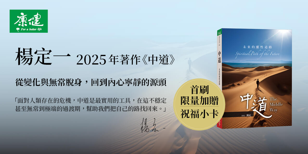 我們生在最發達的時代,卻也是一個充滿危機、災難和轉捩點的時刻。在這不穩定甚至無常到極端的過渡期,我們該如何從變化與無常脫身、回到內心寧靜的源頭,把自己的路找回來?「我認為,中道是最實用的工具,能讓自己為即將而來的大危機和大破壞做好準備。」──楊定一 中道,是所有大聖人領悟真實後對人間的表達;是站在真實看一切,不落人間的任何一個極端。我們從人間來看中道,自然體會到一種中立性。楊定一所談的中道,並不是一般人認為的平均值或折衷,也不是屈居普通或甘於平庸。它不只是純粹的中立,更帶著一種微微的友善、淡淡的歡迎。透過中道,我們的心是平和的,不偏向哪一邊,同時用一點正向的味道面對眼前。這友善的中立性帶來一種正向的動能,造出正向的螺旋場,當下已經推動生命正向的轉變。中道,是每一個人都可以驗證的,是完全符合科學的。本書從本質與現象談起,從生命的體驗切入,同時帶入24個練習,幫助讀者親身領受生命真實的療癒與解脫。*************「全部生命系列」簡介人的健康,身、心、靈從來沒有分開過。楊定一站在全人健康的角度,重新整合從古到今、世界各地的健康法門與哲學系統,用現代的語言重新表達,幫助你我活出全部的生命潛能。《真原醫》、《螺旋舞》、《結構調整》、《好睡》與《最簡單、居家隨時做的結構調整運動》是從身心,也就是從「有」看著這個世界。希望在這個快步調的社會,幫助你我身心做一個整合,希望每一個人回到均衡。畢竟,在失衡的狀態下,一個人隨時都會被身心的不均衡給拉扯,而難以體會生命更深的層面。然而,一切都是一體的展現。有了「全部生命系列」的基礎,自然可以在這個最完整的預防醫學的每一個角落,體會到愛、平等、寧靜與希望。從《靜坐》,「全部生命系列」《全部的你》、《神聖的你》、《不合理的快樂》到《我是誰》、《集體的失憶》、《落在地球》、《定》、《奇蹟》,再到兩本問答《十字路口》、《插對頭》,以及之後的《時間的陷阱》、《短路》、《頭腦的東西》、《無事生非》、《清醒地睡》、《我:弄錯身分的個案》、《豐盛》、《唯識》、《必要的創傷》、《轉捩點》、《療癒的飲食與斷食》、《呼吸,為了療癒》、《水仙》、《中道》,逐漸地,自然移動角度,從二元對立轉到一體,從「空」看著「有」,從內心看著外在,從「在」看著「做」,從「心」看著「人」。隨著每一個作品,我們深入的,不是知識,而是每一個人內心都有的層面——生命最深的智慧與慈悲。這,是人類終極的療癒。