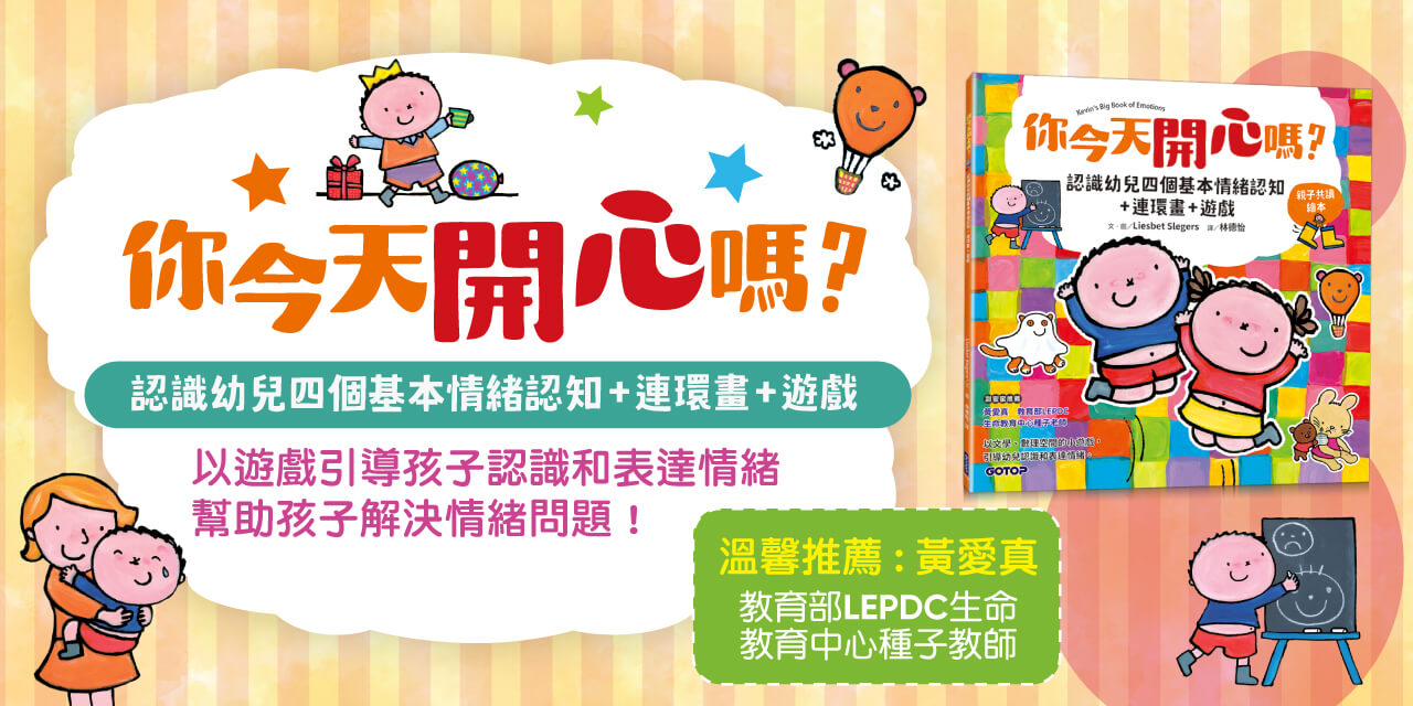 你今天開心嗎?還是難過呢? 觀察生活中的細節、尋找可能引起情緒的原因 連環畫情境故事引導、進入跨領域延伸學習 認知情續-->轉移情緒-->解決問題-->進行小遊戲 讓自己做情緒的主人,一起進入開心的閱讀世界吧! 一起來幫助幼兒認識情緒: 1.幼兒的反常行為其實是有原因的:情緒與感受是每個人生活的一部分,因為不同事情發生在我們身上,導致我們整天的心情和感覺都會不同,這些也會成為幼兒日常生活中很重要的一部分。幼兒和大人一樣,每天都會面對許多的感受與情緒的變化,只是他們時常不知道如何開口形容與表達。幼兒最常以肢體動作或反常的行為,來呈現他們當時的感受與情緒狀態。 2.以三個步驟引導幼兒轉換壞情緒:情緒變化的原因是相當複雜的,大人可以藉由「詢問適當的問題、溫柔安靜的傾聽、溫和漸進式的引導」,幫助幼兒可以安心且坦誠的去表達內心真實的情緒感受。藉由書中情緒表達的例子,我們可以與幼兒討論他們每天經歷的各種感受以及情緒變化。讓我們一起來探討幼兒的內心世界吧! 跟著書中一起來認識幼兒情緒,並嘗試解決問題, 讓每個孩子的心情變好,以微笑開心的過每一天! 【本書特色】 1.畫風活潑用色鮮明,是幼兒視覺喜歡的明亮多彩的閱讀氛圍。 2.跟著每一頁的學習步驟規劃,引導幼兒認識自己的情緒變化。 3.透過察生活中的細節轉換,了解事情的發生與感受的原因。 4.連環畫的情境故事,可再次審視情緒發生的前因後果與轉變。 5.延伸遊戲的玩中學,可刺激幼兒跨領域學習的多元思考模式。 6.符合幼兒學習指標的六大能力。 專業推薦 黃愛真 教育部LEPDC生命教育中心種子教師 「以文學、數理空間的小遊戲,引導幼兒認識和表達情緒。」 ◎適讀年齡:適合學齡前、國小低年級親子共讀。