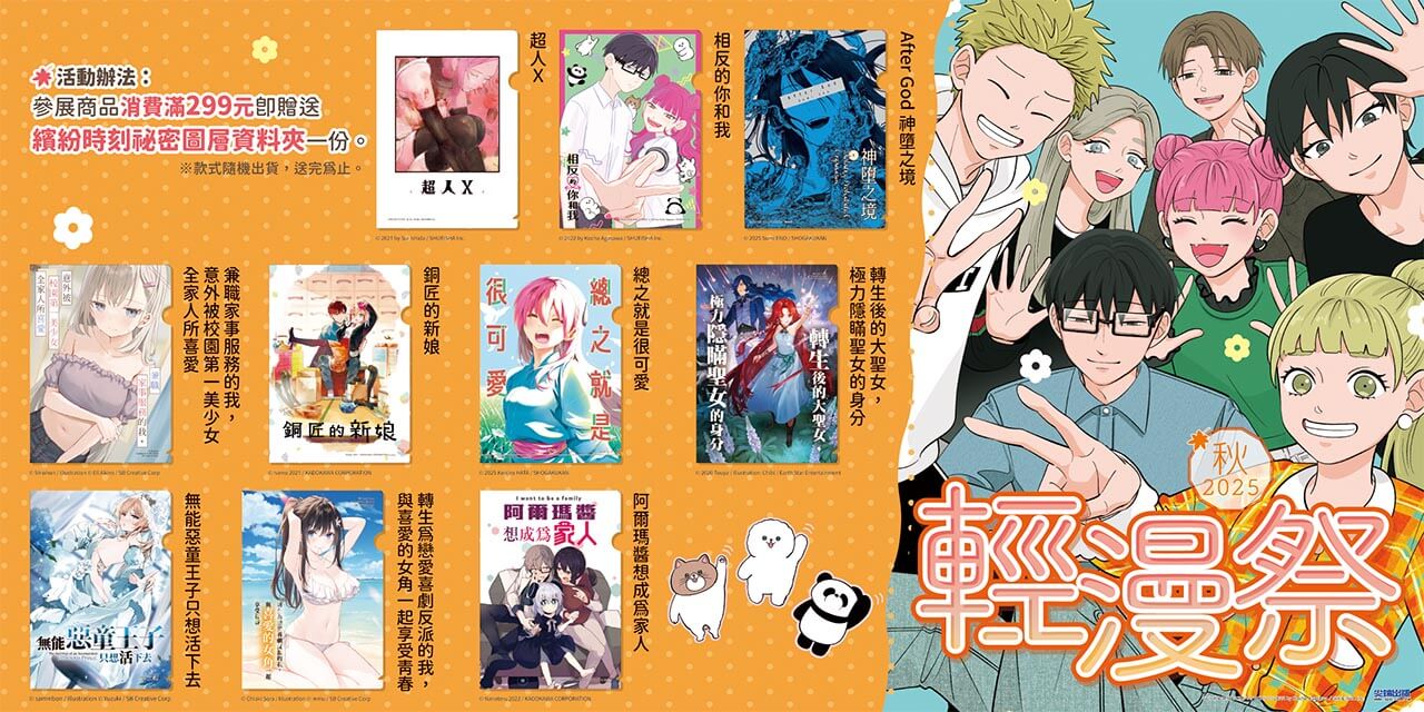2025尖端秋季輕漫祭,參展商品消費滿$299元即贈送『繽紛時刻秘密圖層資料夾』乙份,10種款式隨機出貨,數量有限送完為