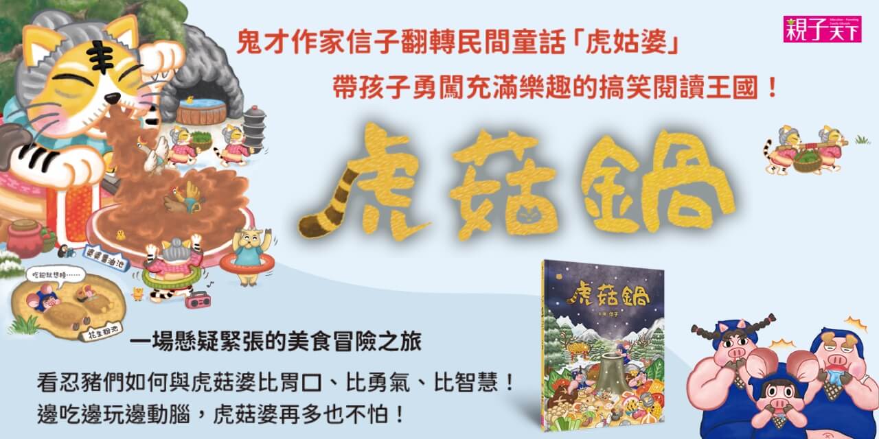 噹噹噹~快來聽鬼才信子翻轉民間童話「虎姑婆」 忍豬三姐弟為了尋找美食意外來到避難天堂 沒想到竟然是修煉百年的虎菇婆設下的騙局…… 鏘鏘鏘!一場懸疑緊張的美食冒險之旅 結合各種益智遊戲即將展開: 看忍豬們如何與虎菇婆比胃口、比勇氣、比智慧! 邊吃邊玩邊動腦,虎菇婆再多也不怕! 忍豬三姐弟在尋找美食的旅程中, 為了避免被虎菇婆吃掉,跟著動物村民來到避難天堂。 這裡有美食、巨大蔬菜園、醬料工廠,還能享受按摩和泡湯。 動物們泡在熱呼呼、香噴噴的沙茶溫泉裡都忍不住睡著了……。 同時間,沒去泡溫泉的大耳妹卻發現了一個驚天大祕密── 避難天堂就是虎菇婆設下的美食陷阱。 請看忍豬三姐弟如何發揮所長拯救所有動物, 並找到讓人讚嘆不已的美食。 【忍豬三姐弟美食之旅筆記】 怪力姐:虎菇婆不是虎姑婆,只是唱歌難聽了些。其實個個都是美食家,說實在的,要不是虎菇婆,我們也無法發現世上竟然有如此美味的食物呢! 肥嘴弟:雖然美食之旅嚇得我一下子瘦了0.01公斤,但不得不說蔬果為醬料基底的沙茶火鍋好好吃,噗! 大耳妹:我們也沒那麼厲害啦,竟然因為這件事而建立了虎菇村、辦了虎菇節,還有忍豬三姐弟獨家吃法的報導,成為名人我會害羞啦! 【虎菇鍋裡賣什麼菜?】(右編的第一手報導) ․改編傳統民間故事虎姑婆,大家吃火鍋時別忘了和同桌的人一起分享新的「火鍋」由來喔! ․獨家附上特派員呱呱的「虎菇節」特別報導,想到虎菇村旅遊的讀者千萬不要錯過。 ․鬼才信子維持一貫的幽默有趣,打開孩子「笑點」,其中還穿插了孩子最愛的迷宮、找一找小遊戲喔! ․忍豬三姐弟勇敢探索新生活,為人生展開一段新經歷,開啟好奇電達、互助互愛、適應新環境、學習解決問題。 ․忍豬三姐弟同心協力,發揮所長,團結力量大!體會有夥伴的重要性。