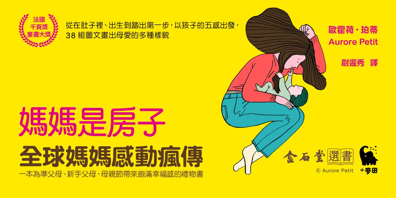 全球媽媽感動瘋傳 一本為準父母、新手父母、母親節帶來飽滿幸福感的禮物書 從在肚子裡、出生到踏出第一步, 以孩子的五感出發,38組圖文畫出母愛的多種樣貌 小寶寶心中的媽媽是什麼模樣? 從味覺、嗅覺、觸覺、聽覺、視覺體會媽媽帶來的安全感 每一頁,都將賦予媽媽無所不能的力量! 全書以「特別色Pantone812U」印製 獻給媽媽最特別的禮物 ▋感動推薦 洪愛珠(作家) 周婉湘(《一起讀、一起玩》作者) 夏夏(詩人) 郭孚(「繪本‧小日子」版主) 湯舒皮(插畫家) 盧方方(後青春繪本館主編) 彎彎老師(「一起來彎樂」版主) ▋內容簡介 媽媽是房子,媽媽是車子, 媽媽是夜裡的月亮,媽媽是一段旋律, 媽媽是一座小島,媽媽是一座山的山峰, 媽媽是故事,媽媽是祕密基地,是一個大貝殼,是糖果…… ▋本書特點 ★為孩子帶來安心與滿足 每一頁的圖都像一幅畫,而文字像一首可愛的小詩,也像溫暖的童謠。一本從多個角度不斷定義母嬰關係的圖畫書,在無所不在的陪伴中,感受到媽媽的愛是世界上最強大的愛。 ★為大人帶來飽滿的幸福 每一個翻頁,都讓家人想起育兒時期不可思議的點滴時光。隨著孩子的成長,親子關係從形影不離,直到孩子踏步向前走。儘管物理的距離越來越遠,但媽媽永遠是媽媽。 ★法國新銳插畫家,為留住育兒第一年的感動而畫 大兒子出生時,插畫家珀蒂試著以創作捕捉當媽媽的日常,對她來說,孩子誕生的第一年,也是「媽媽」這個身分誕生的第一年, 她認為,當我們發現自己孩子長大的同時,也意識到這些片段即將過去,我們無法讓時間停止,但有一本這樣的書,讓人更平靜的體會這個階段的點滴。 ▋全球媽媽感動推薦 這本書的溫柔圖畫,對母親的偉大致敬,展現了超級媽媽的所有力量!──法國媽媽Amazon網站書評 身為媽媽,一打開就會產生共鳴,您的寶寶也會產生共鳴!──澳洲媽媽Amazon網站書評 圖像好美、顏色超級豐富!──義大利媽媽Amazon網站書評 我很喜歡和兒子、還有丈夫一起讀。──西班牙媽媽Amazon網站書評 這是一本甜蜜、簡單的小書,反映了嬰兒和幼兒階段媽媽(尤其是新手媽媽)的溫柔。我和我三歲的孩子都非常喜歡!──美國媽媽Amazon網站書評