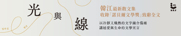 「世界何以如此殘暴又使人痛苦? 同時,世界又何以能如此美麗?」 ──韓江 諾貝爾文學獎得主韓江最新散文集 收錄「諾貝爾文學獎」致辭全文 ◆ 以冷靜又熾熱的文字縫合傷痛 講述愛與生命的文學宣言 從花園到書頁,從傷痛到和解, 韓江以最細膩靜謐的筆觸, 寫下關於生命質地的根本思索。 ◆ 本書是韓江榮獲2024年諾貝爾文學獎後,最新出版的作品。收錄了諾貝爾文學獎的獲獎致辭全文〈光與線〉,得獎感言〈即使在最黑暗的夜晚〉及茶杯捐贈感言〈小茶杯〉;還有三篇未發表過的詩作與散文:〈朝北的庭院〉、〈庭院日記〉、〈再多活一些時日),其中〈庭院日記〉是她在獲得真正全然屬於自己的第一個家後,所寫下的庭院植物觀察日記。全書共十二篇作品,搭配韓江自己拍攝的照片集結而成。 她的獲獎原因是「以強烈而詩意的散文直視歷史創傷,展現人性和生命的脆弱」,書中特別提到她創作《少年來了》與《永不告別》時的心境(〈光與線〉、〈出版之後〉),其書寫的光州與濟州43事件,雖然是關於韓國威權歷史的小說,但她在2024年12月發表獲獎感言時,適逢韓國總統短暫實施戒嚴,讓她的書寫格外顯得有現實意義。這也證明了不管文學寫的是過去歷史或想像的未來,都與我們當下的現在密不可分。 在這本散文集裡,詩與散文、日記與照片,錯落交織,重新找到了它們的位置。不管是自我剖析創作的緣起與幕後風景,或是詩作中那些對人性本質、對暴力與痛苦、對愛與希望、對溫暖生命的疑問與渴求,還是日記中聚焦日常感受,如光線方向、季節變化、泥土氣息、植物生長等細微觸感,讀者都可以跟著韓江的所思所想,深入探看其生命軌跡,她創作小說時的所思所感,書寫過程中對生命的提問與思考,她是從什麼樣的問題意識出發、又在書寫過程中如何與自己對抗。透過韓江「詩意散文」與「無邊界書寫」交融,讓我們終於能夠直視這個充滿生命奇蹟與耀眼光芒的世界,並從中獲得安慰與力量。 ◆ ★回首過往,我閱讀與書寫文學的所有時光,似乎一直反覆經歷這種驚奇的時刻──透過名為語言的絲線,流入他人的肺腑,遇見他們的內在,以及將我視為重要且迫切的提問端出來,讓它們乘著那條線,猶如電流般朝著他人流去。 ★陽光穿透樹葉時,會形成透明的嫩綠光澤。每當看到那光澤,我就會產生一種獨特的感受。那是一種彷彿被鏤刻在與植物共生的人類基因裡,近乎本質般的喜悅。……在這個小小庭院溫柔且沉默的懷抱中,每天、每一刻、每個季節,光以它變化的韻律改變了我。 ★一個人能做到完全清白嗎?我們抗拒暴力的極限又能到哪裡?若有人為此拒絕隸屬於人類這個物種,他會遭遇到什麼樣的事? ★從第一本小說到近期的小說,在我所有提問中最深的那一層,會不會始終都向著愛呢?那會不會是我生命中最悠遠也最根本的低鳴? ◆ 【全書特色】 ◎收錄「諾貝爾文學獎」演講致辭全文、獲獎感言。 ◎目前最正式且完整的散文集。可以從這本開始更輕鬆地接近她的文學世界,並且瞭解其創作時的心境轉折。 ◎特別收錄八張作者拍攝照片,以及三篇未公開的詩作與散文,尤其是八歲時創作的一首詩,可一窺她早期文學萌芽的起點。