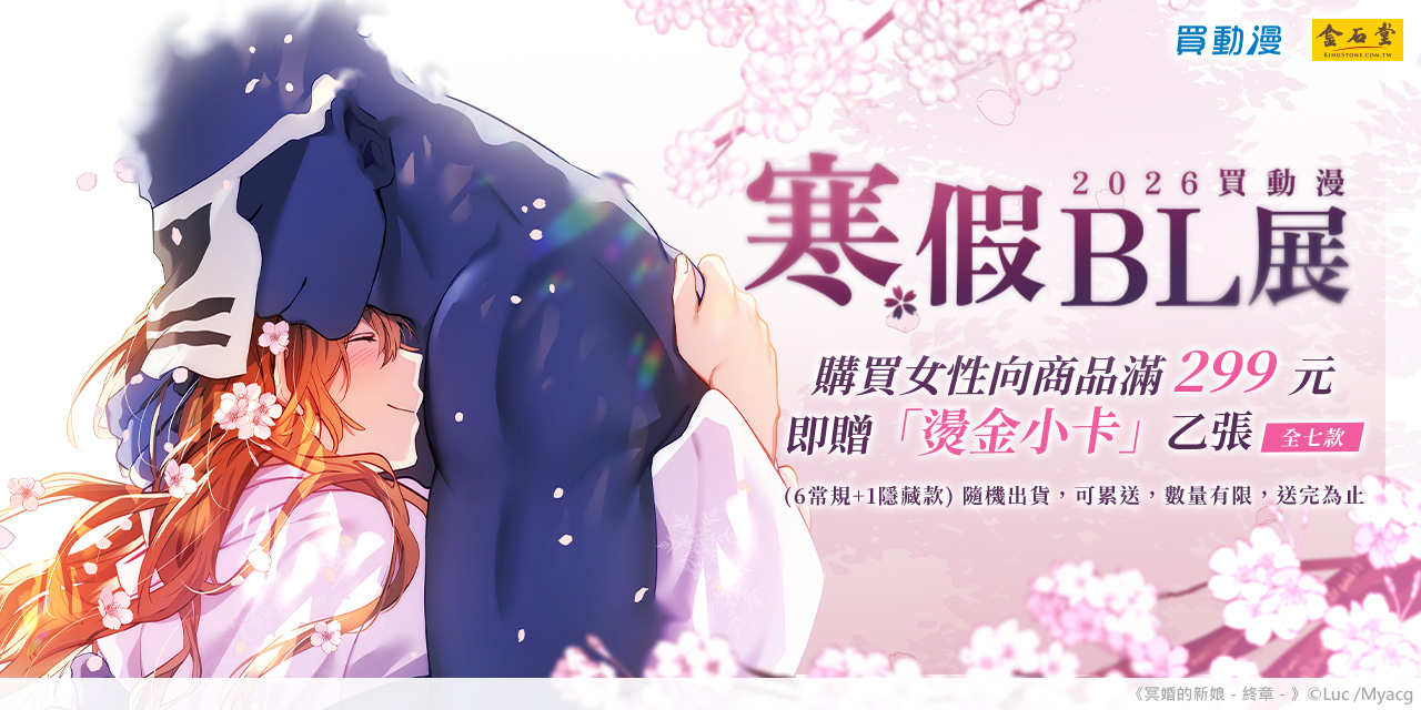 25寒假漫博買動漫-買動漫女性向作品購滿299元送「女性向燙金小卡(7款隨機)」乙張,單筆訂單最多累送5次,數量有限送完