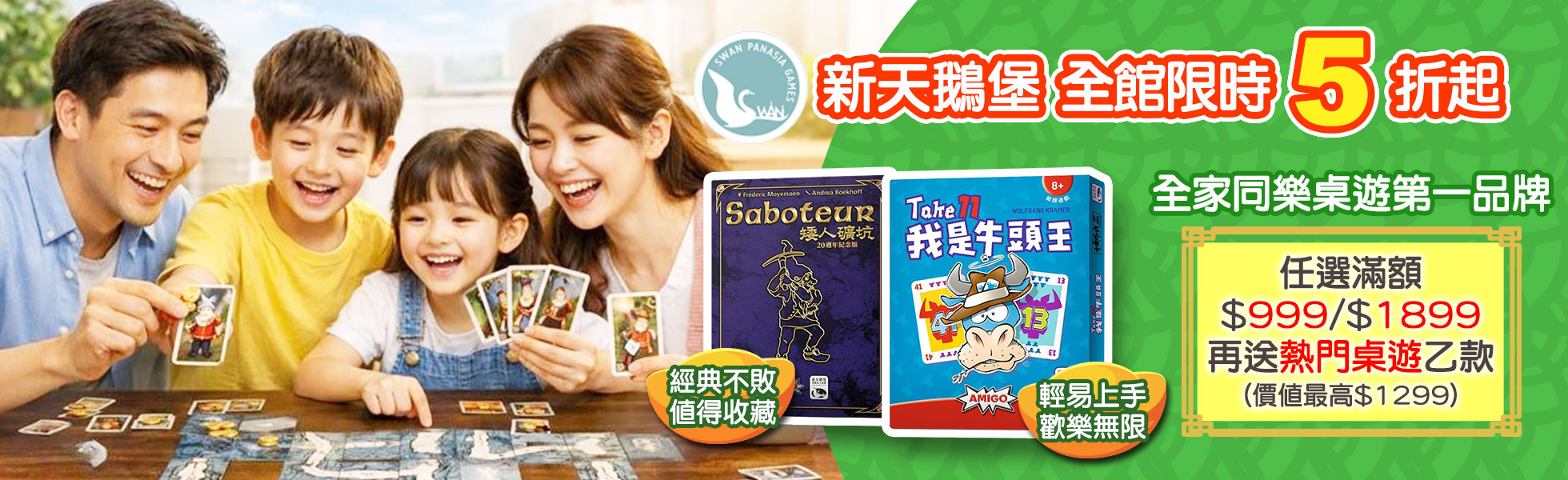 新天鵝堡1月優惠活動:指定桌遊85折起、拼圖任選5折!買系列桌遊任乙項元就送「Solo試玩包」、滿999元送「假不喵」、