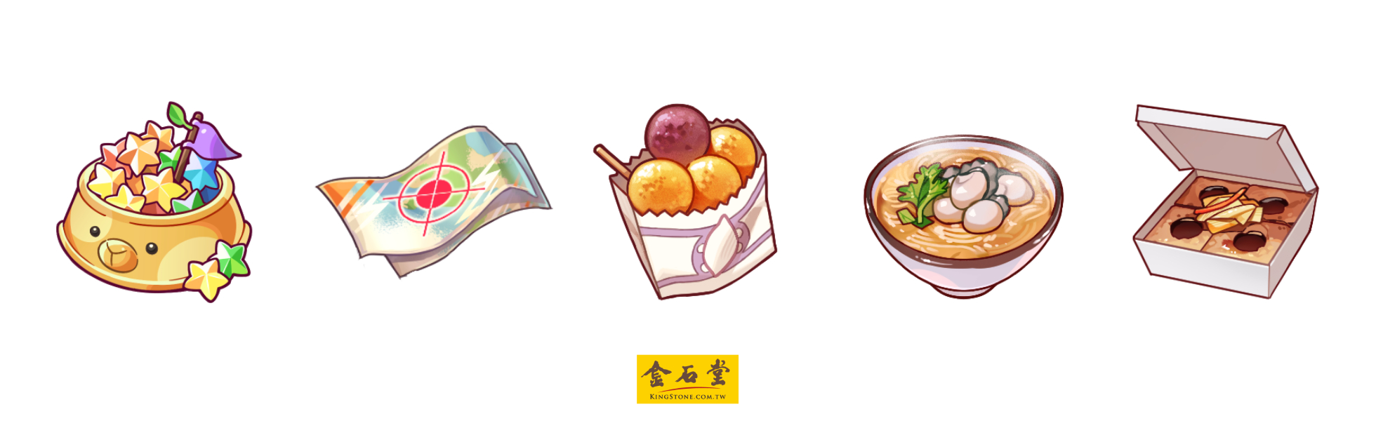 【金吉拉禮包】可獲得指定遊戲虛寶( 小吉拉飼料*2000、關卡掃蕩券*10、夜市食物-地瓜球 *8、夜市食物-蚵仔麵線 *8、夜市食物-臭豆腐*8 )