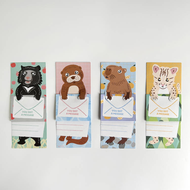 以台灣常見的可愛動物為靈感設計,每一張都藏著小小驚喜。摺疊式的便條紙能將你的悄悄話收起來,不怕被旁人窺見。讓書寫不只是記錄,更像與動物們分享的小秘密,增添日常的趣味與溫度。