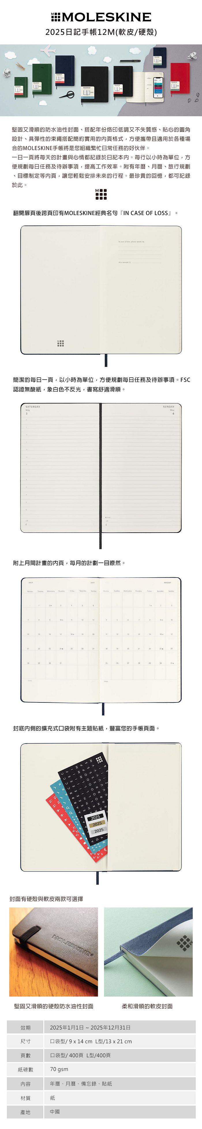 【MOLESKINE】2025日記手帳12M硬殼口袋黑