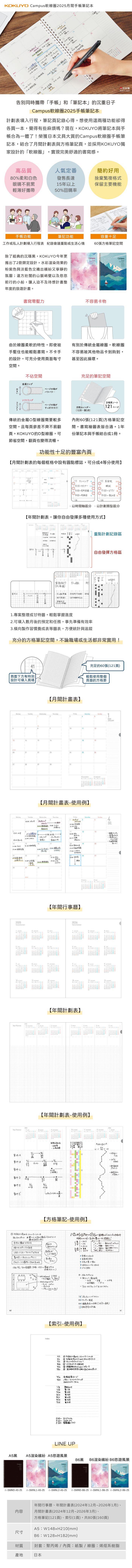KOKUYO獨家開發的軟線圈"Sooofa"系列,因大受好評,今年也推出了手帳款!今年以「Well-being」為主題,運用積極正向的色系,設計簡約卻帶點躍動感,讓人不禁期待2025年的到來耐髒又堅固的封面