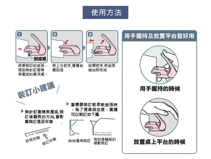 不需用針裝訂的環保設計,因此命名為「訂」書機。