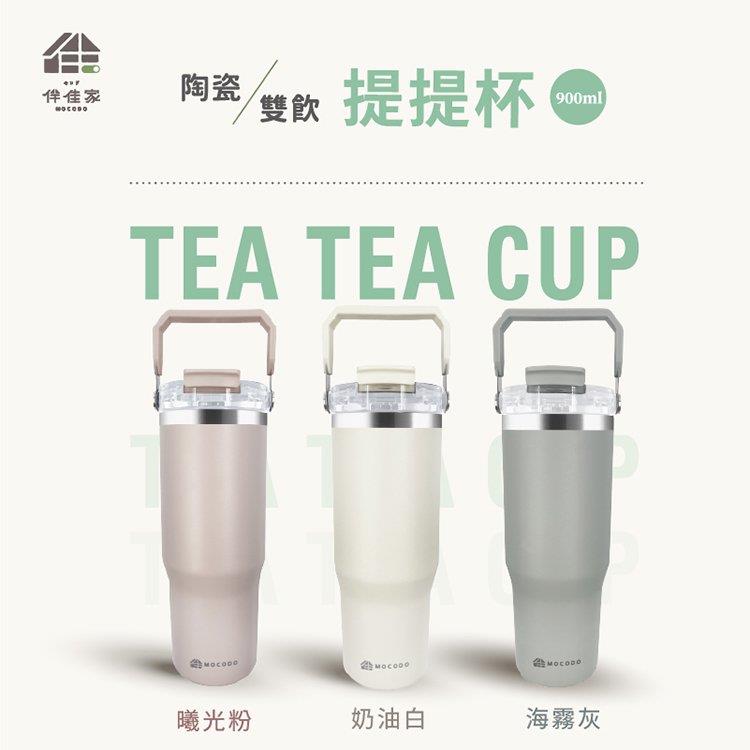 伴佳家 陶瓷雙飲提提杯 海霧灰