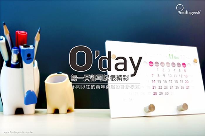 O’day 萬年曆面板上的月份、星期與日期是沒有顏色的,藉由主要組成部件本身背景色相互應用,呈現更貼近使用者熟悉的月曆顯示,徹底改變現有萬年曆之不足,其主要特色為: