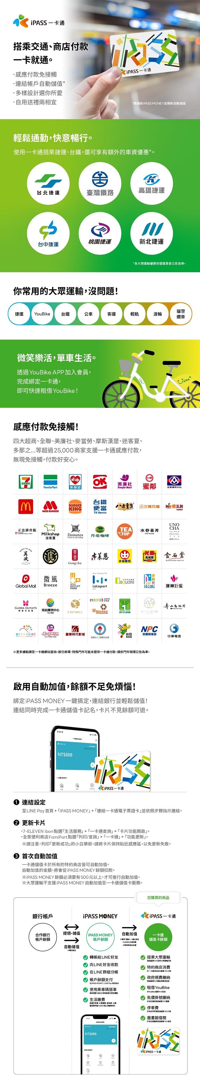 .可使用於台北捷運、Youbike、火車、公車等大眾運輸
