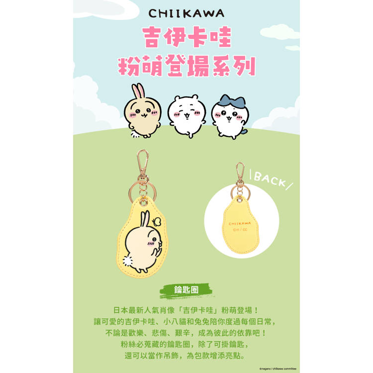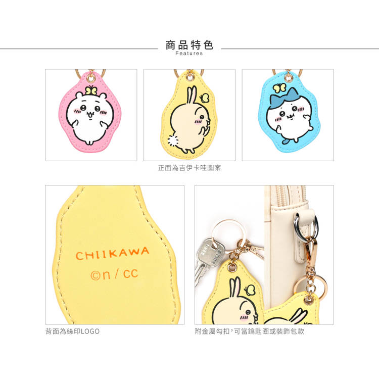 日本最新人氣肖像「吉伊卡哇」粉萌登場!讓可愛的吉伊卡哇、小八貓和兔兔陪你度過每個日常,不論是歡樂、悲傷、艱辛,成為彼此的依靠吧!粉絲必蒐藏的鑰匙圈,除了可掛鑰匙,還可以當作吊飾,為包款增添亮點。