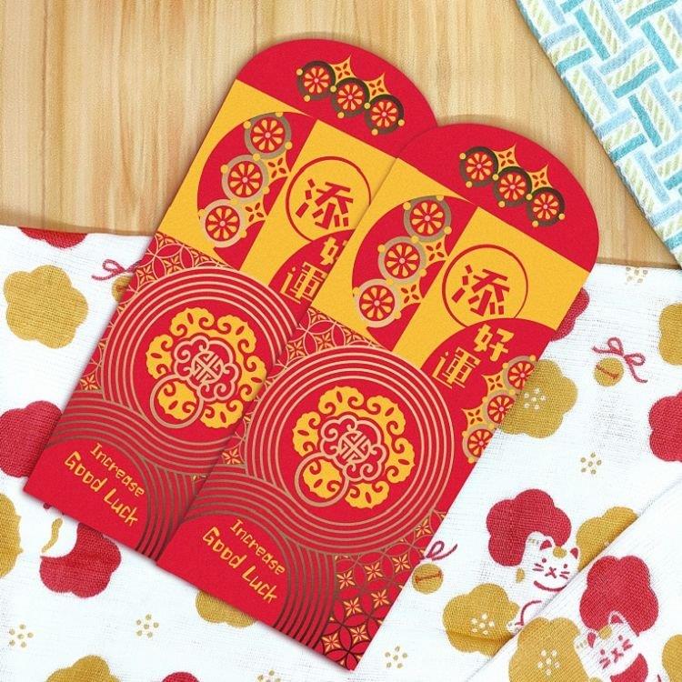 設計上結合如意紋(長壽)、八字紋(發財)、錢紋(富貴)等意象,願您吉祥如意一整年,「為您添好運」。能用於年節、獎金袋、生日、年終、分紅、開運、討吉利等用途。