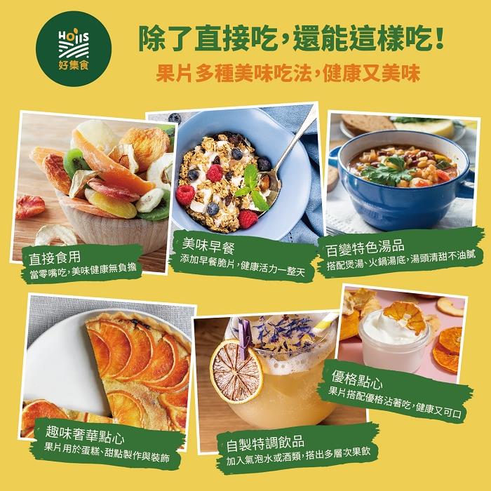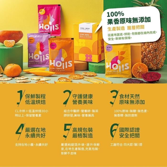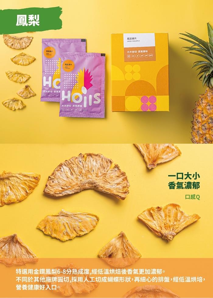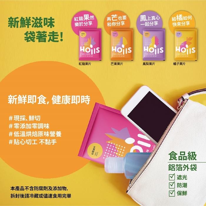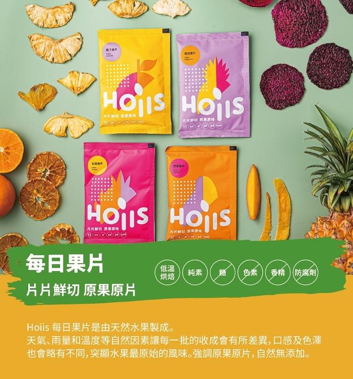 Hoiis每日果片是由天然水果製成,天氣、雨量和溫度等自然因素讓每一批的收成會有所差異,口感及色澤也會略有不同,果片系列的獨特性,保證吃的到真實的自然原味。除了天然,更堅持健康零添加,沒有任何的偽甜,即使果片輕薄,也吃的出滿滿的水果原味。