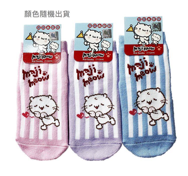 四季直條紋愛心麻吉貓止滑嬰兒襪7-12cm