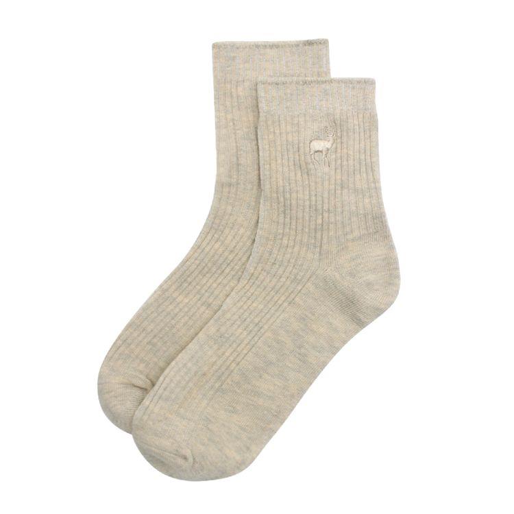 四季CB刺繡直螺紋3/4棉襪白22-26cm