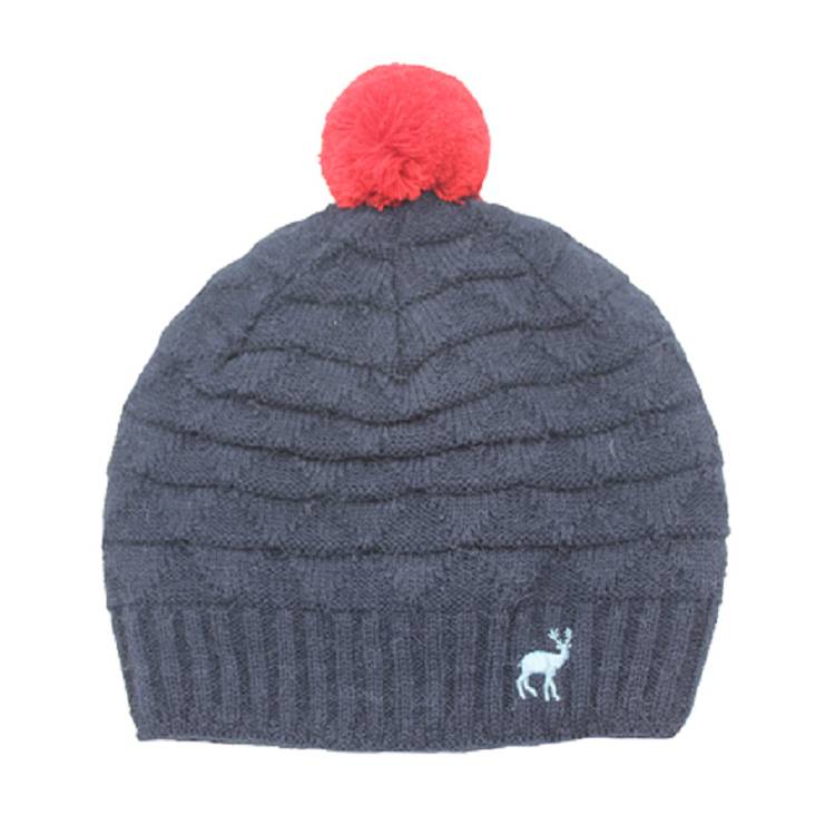 【2025秋冬】童CB刺繡三角紋雙層圓球帽海軍藍