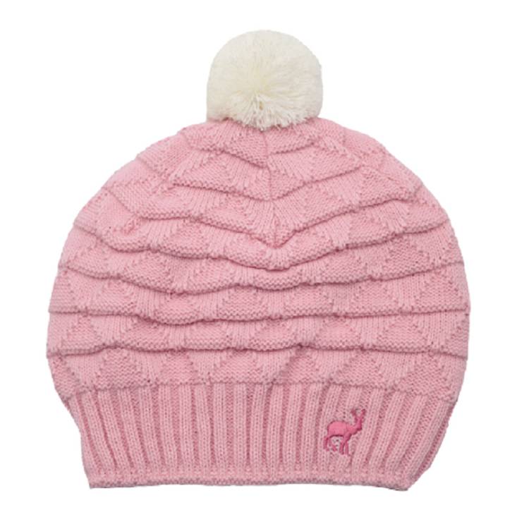 【2025秋冬】童CB刺繡三角紋雙層圓球帽中粉