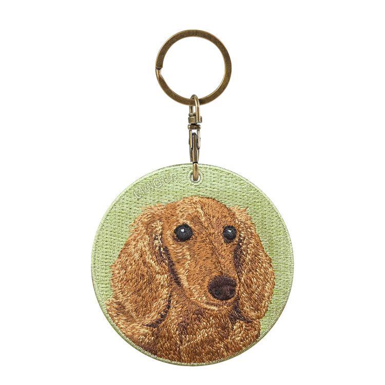 Emjour雙面刺繡吊飾-棕毛臘腸