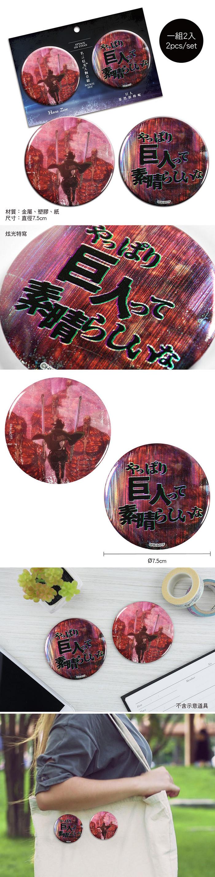 語錄炫光大胸章組(2入)-進擊的巨人C款(漢吉)