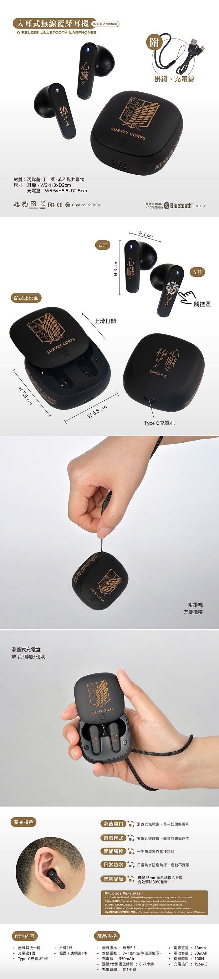 入耳式無線藍牙耳機-進擊的巨人A款(調)