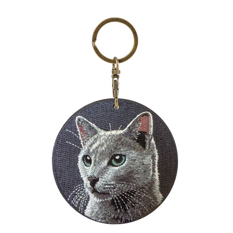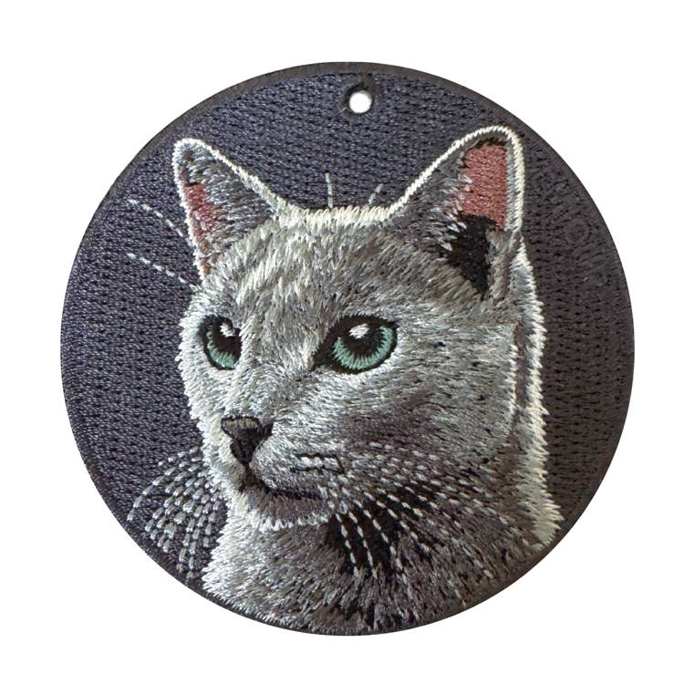 雙面刺繡吊飾-俄羅斯藍貓